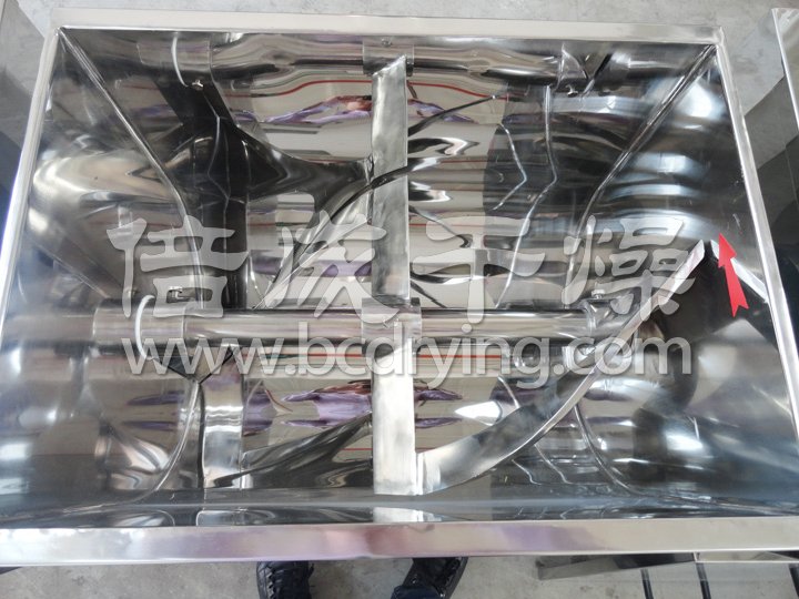 ◎本機與物料接觸處均采用不銹鋼制造,槳葉與桶身間隙小,混合無死角,攪料軸兩端設(shè)有密封裝置,能防止物料外瀉。