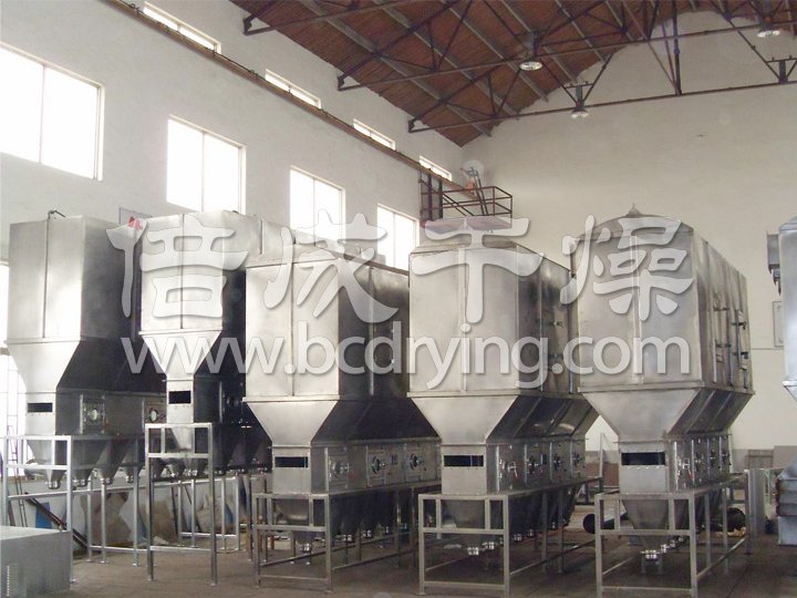 潔凈的熱風(fēng)經(jīng)閥板分配進(jìn)入床體內(nèi),從加料器進(jìn)入的濕物料被熱風(fēng)形成沸騰狀態(tài)。由于熱風(fēng)與物料廣泛接觸,增強(qiáng)了傳熱傳質(zhì)的過(guò)程,因此在較短時(shí)間內(nèi)就可干燥。如用連續(xù)型,物料從床體的一頭進(jìn)入,經(jīng)過(guò)幾十秒至幾分鐘沸騰干燥,自動(dòng)從床體另一頭流出。本設(shè)備一般進(jìn)行負(fù)壓操作。