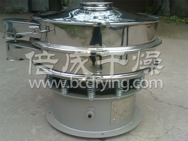 本機由料斗、振蕩室、聯軸器、電機組成。振蕩室內有偏心輪、橡膠軟件、主軸、軸承等組成??烧{節(jié)的偏心重錘經馬達驅動傳達到主軸中心線,在不平衡的狀態(tài)下產生離心力,使物料強度改變,在篩內形成軌道旋渦。重錘調節(jié)器的振幅大小可根據不同物料和篩網進行調節(jié)。整機結構緊密、體積小、不揚塵、噪音低、質量高、能耗低、移動維修方便。